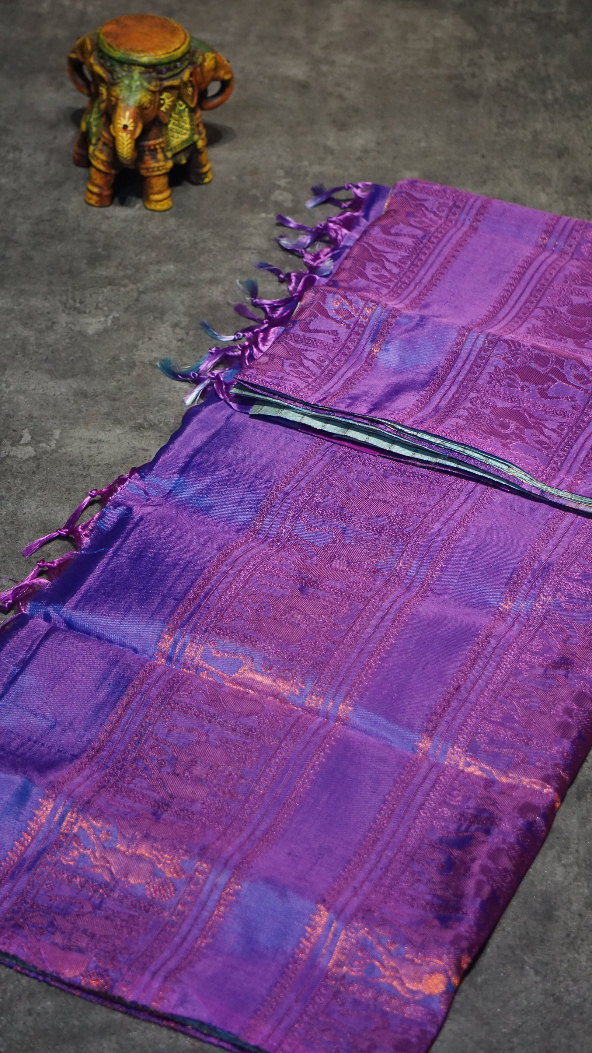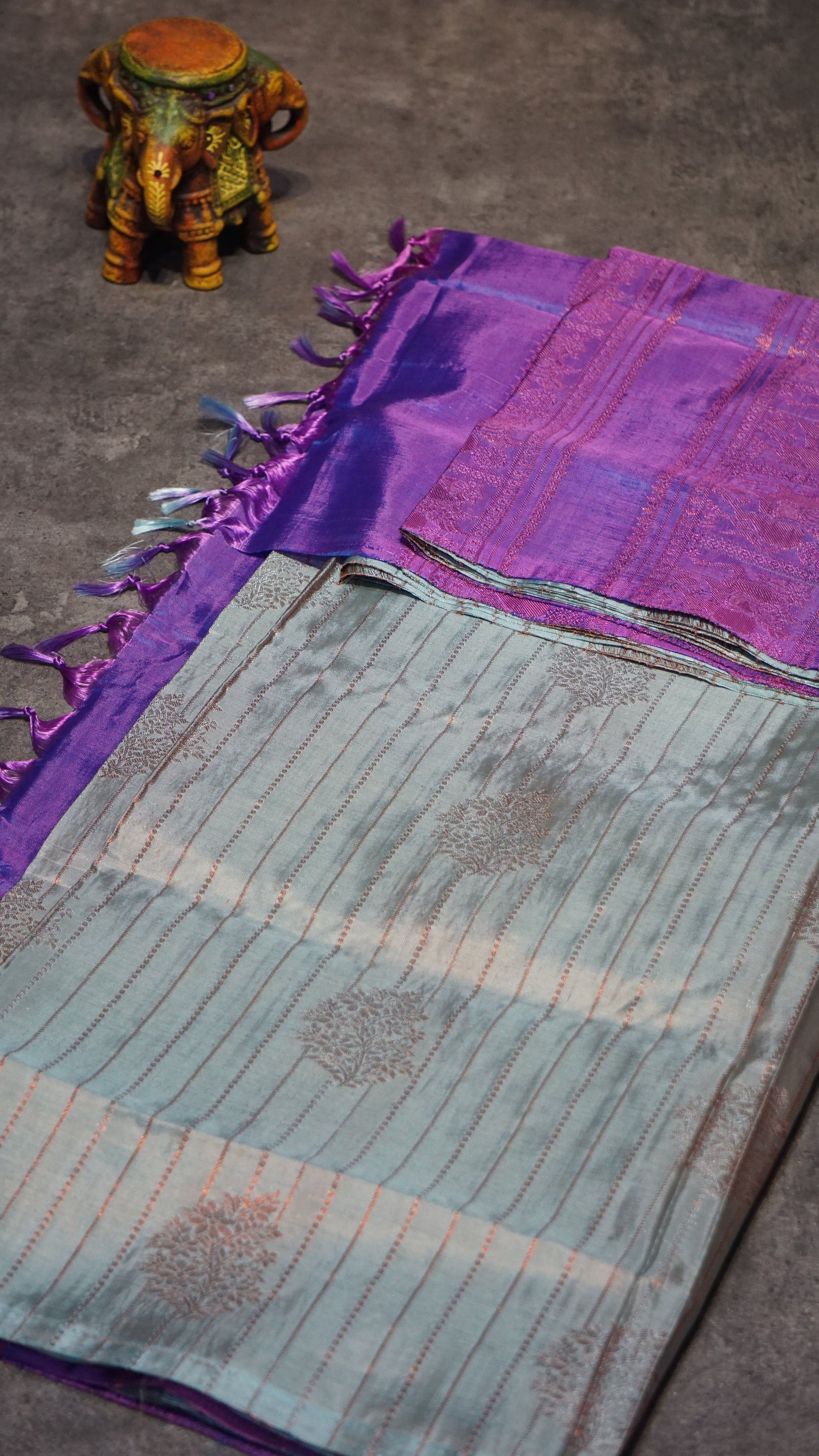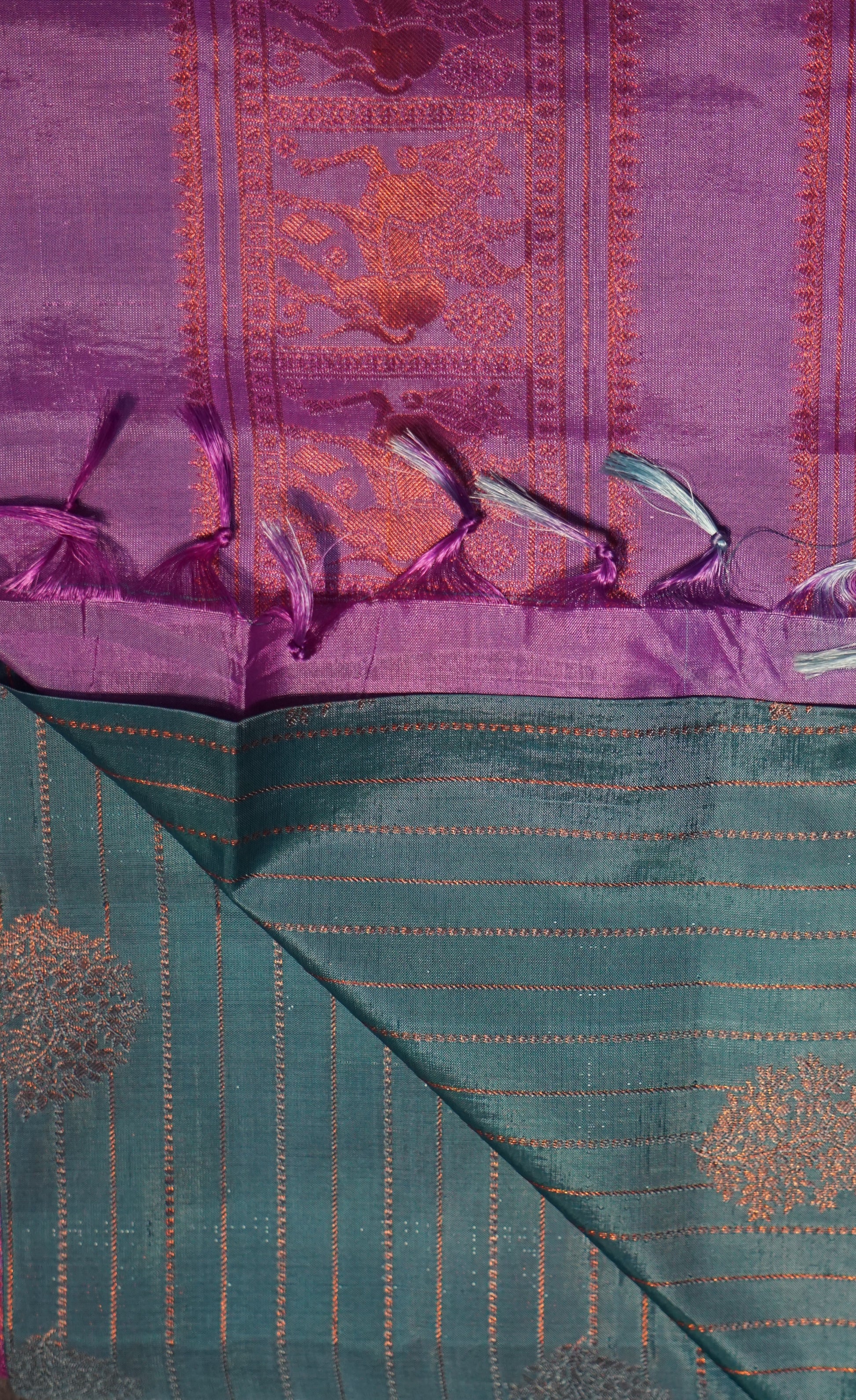 Vazhai Naaru Pattu Saree Vairaoosi Metalic Green to Lavender