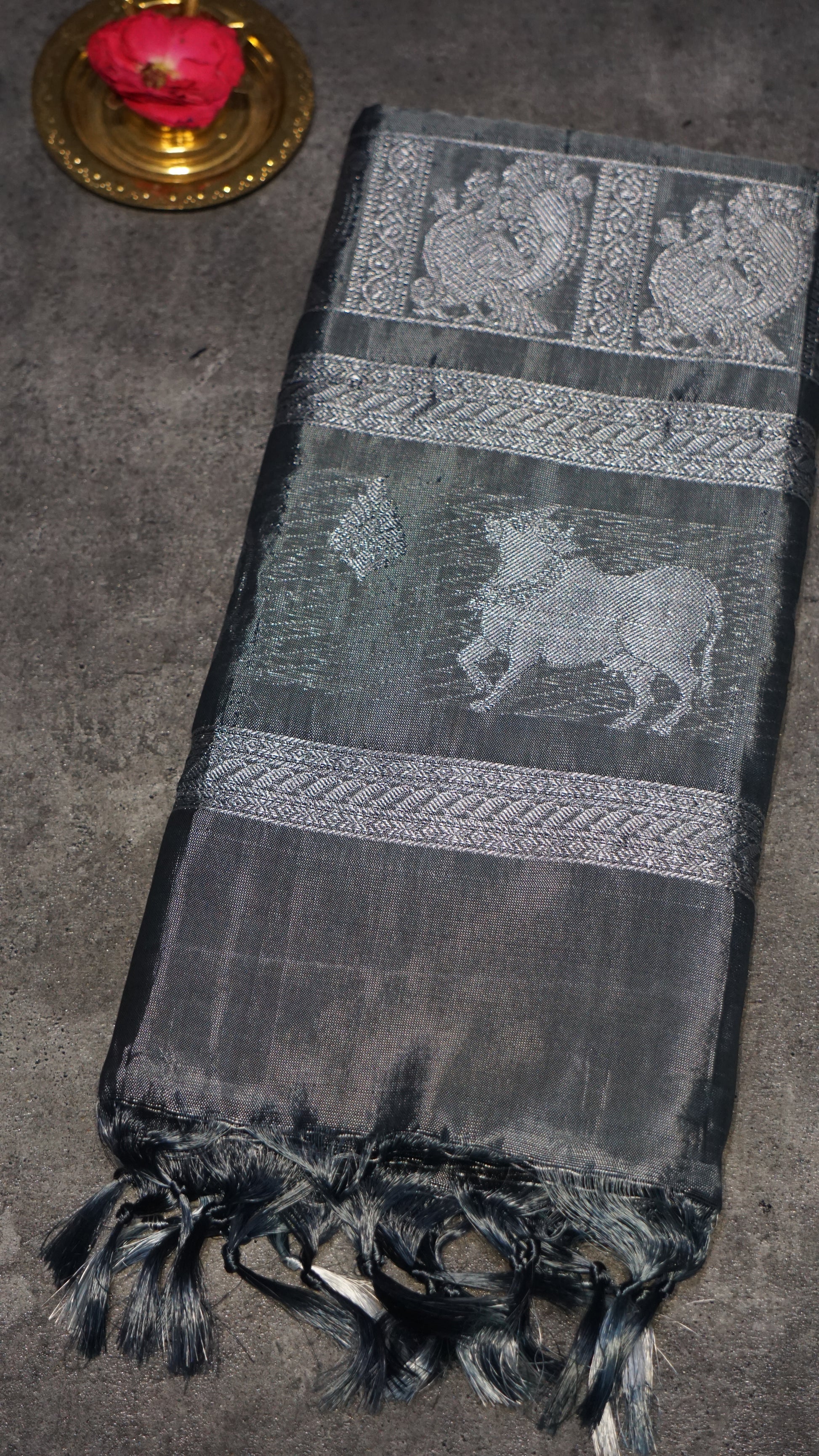 Vazhai Naaru Pattu Saree Vairaoosi Metallic Grey