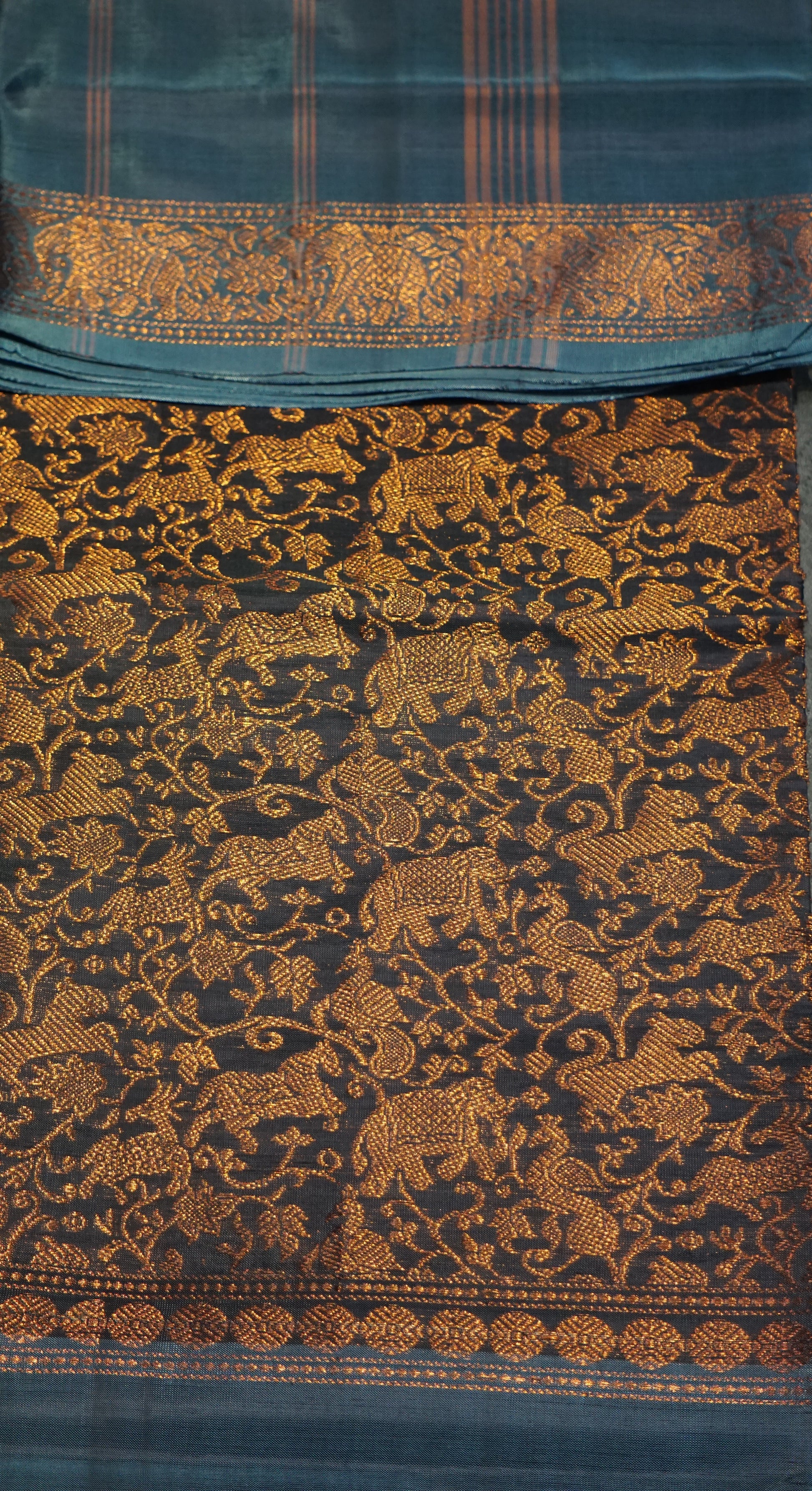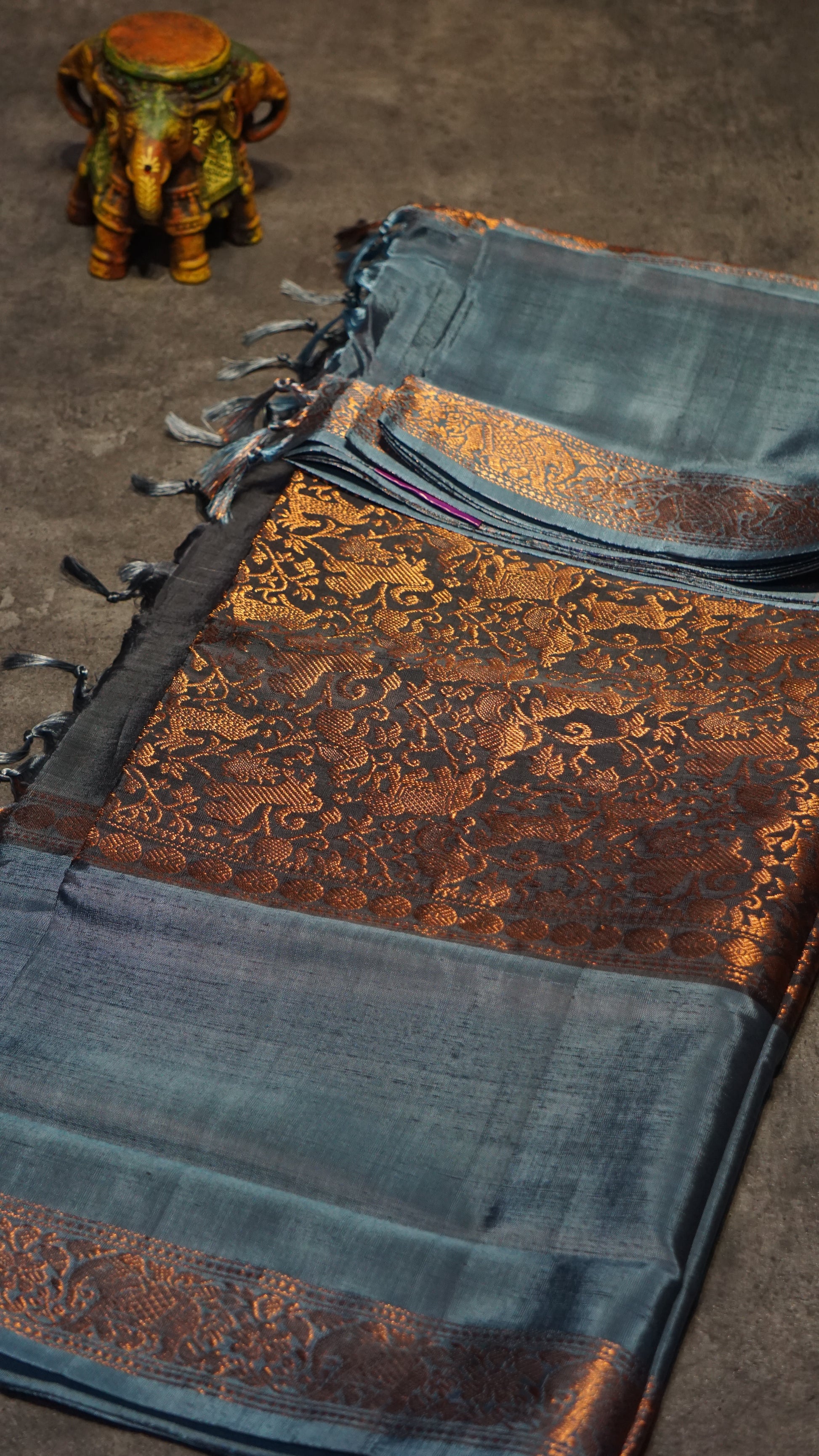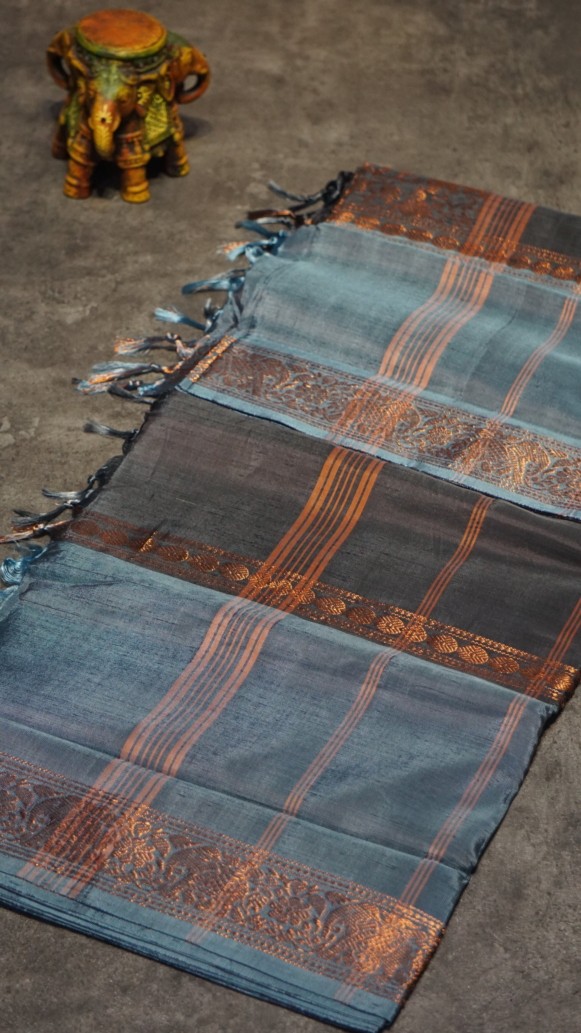 Vazhai Naaru Pattu Saree Vanasigaram Grey to Blue