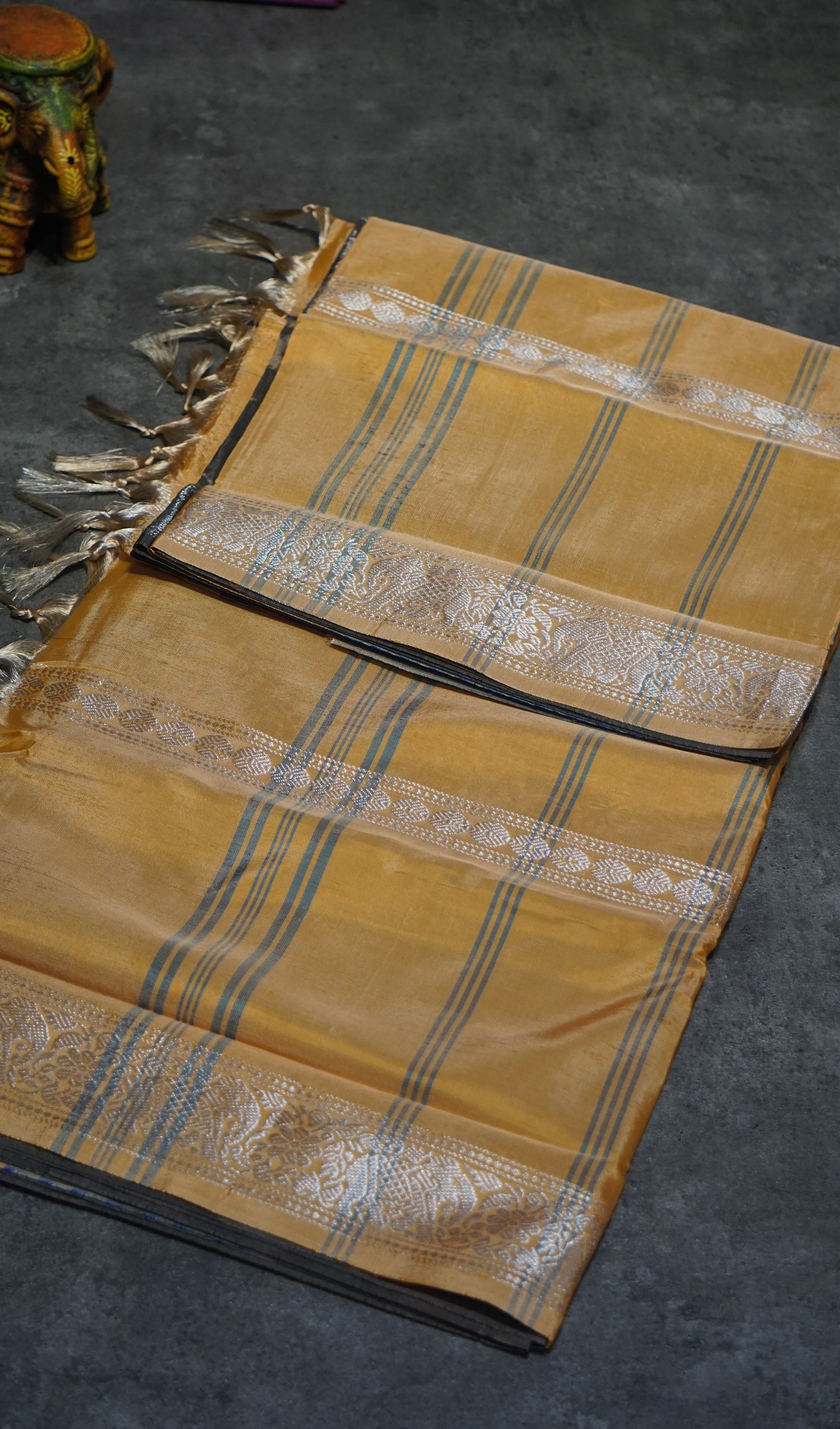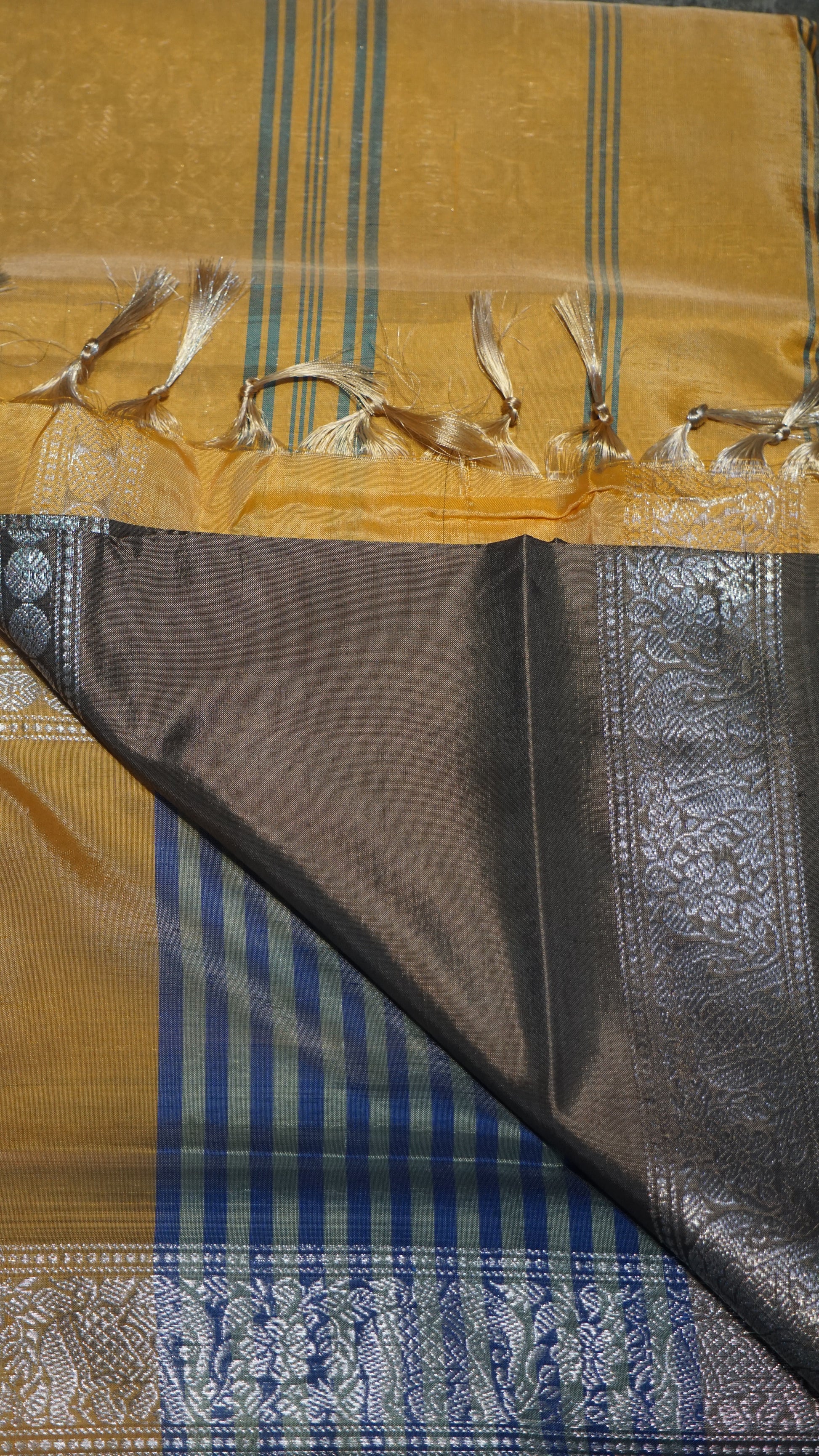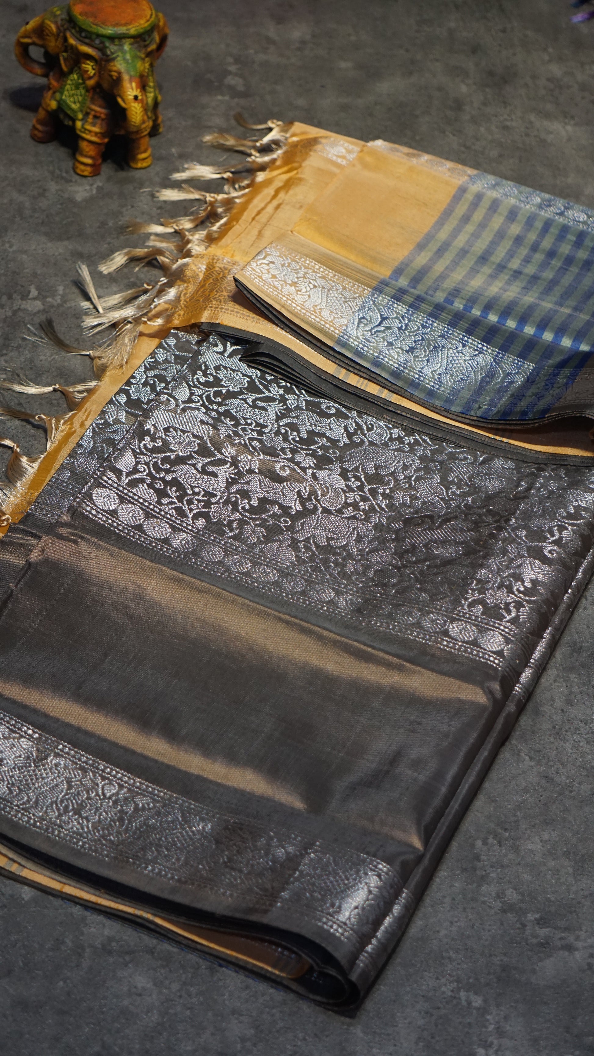 Vazhai Naaru Pattu Saree Vanasigaram Metalic Grey to Sandal