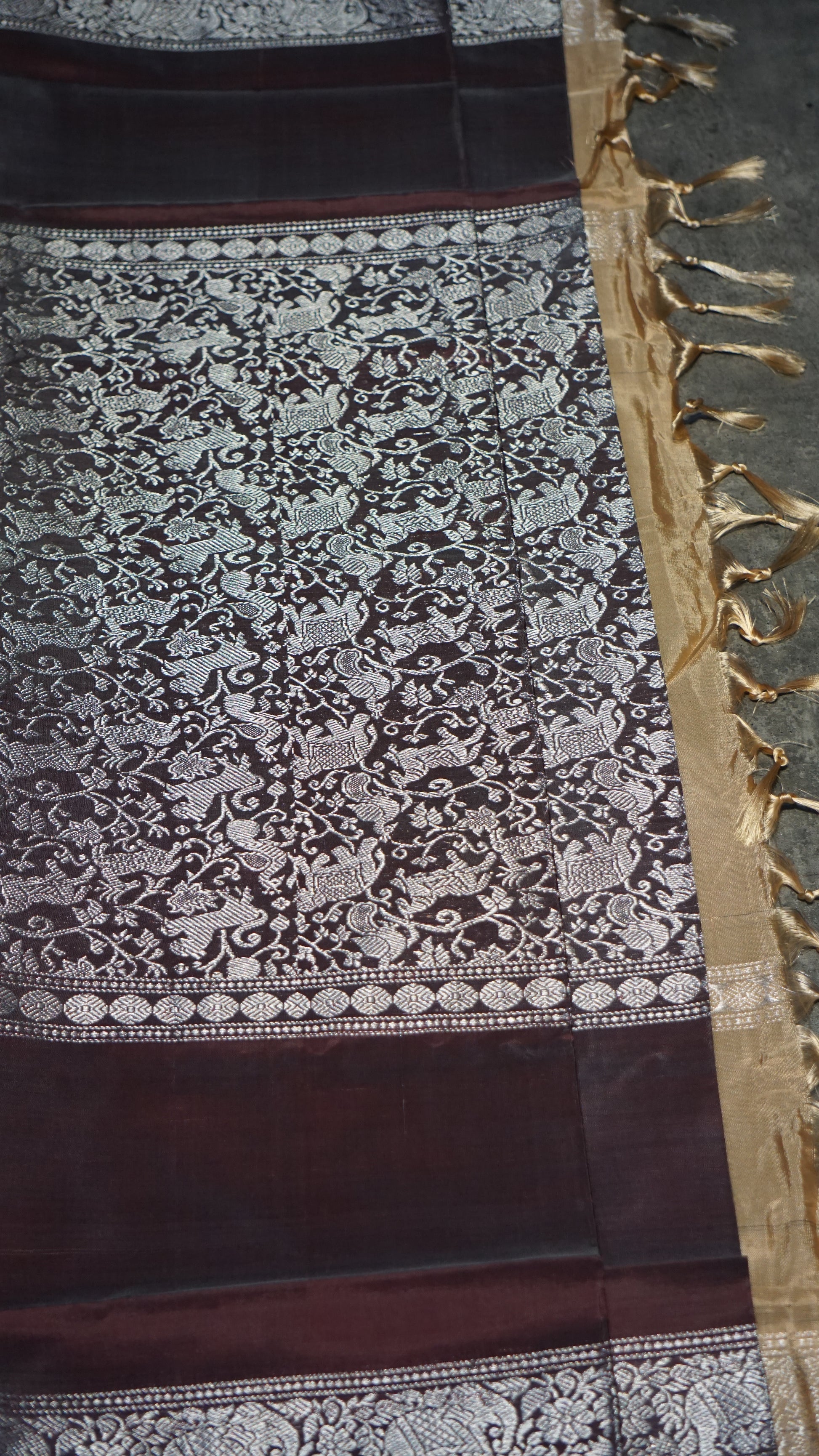 Vazhai Naaru Pattu Saree Vanasingaram Cream - Wine