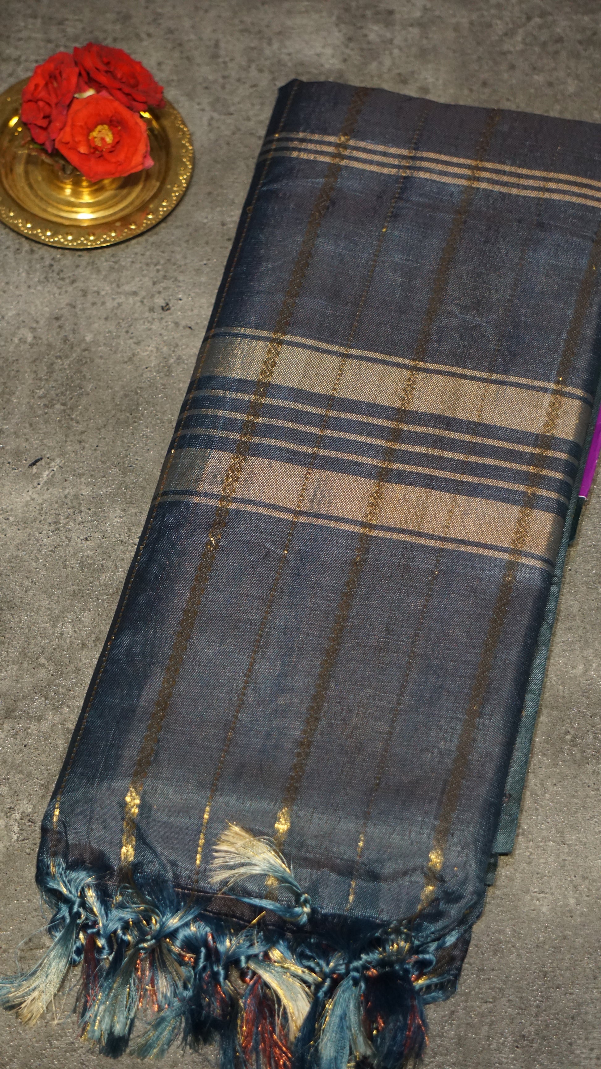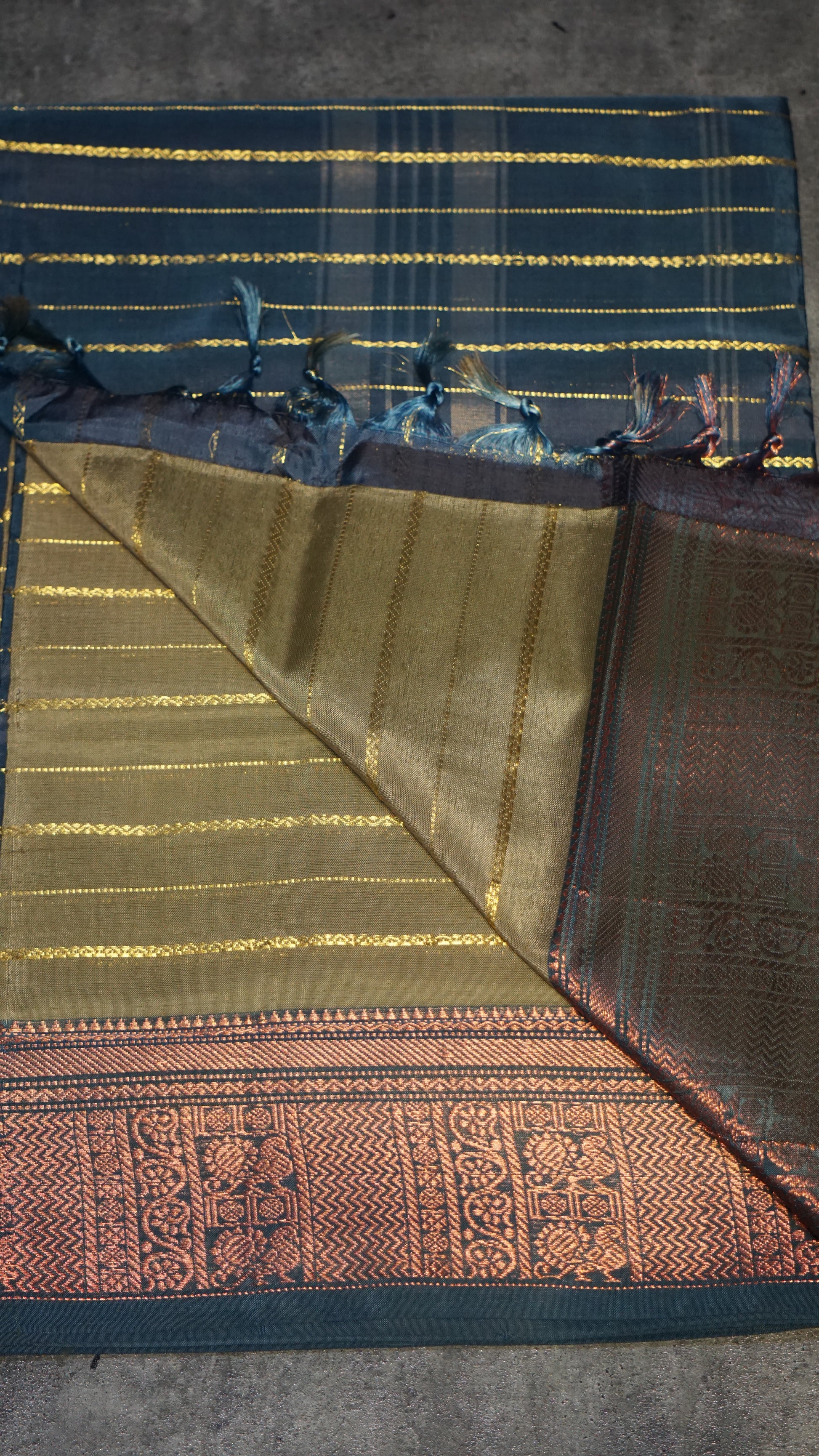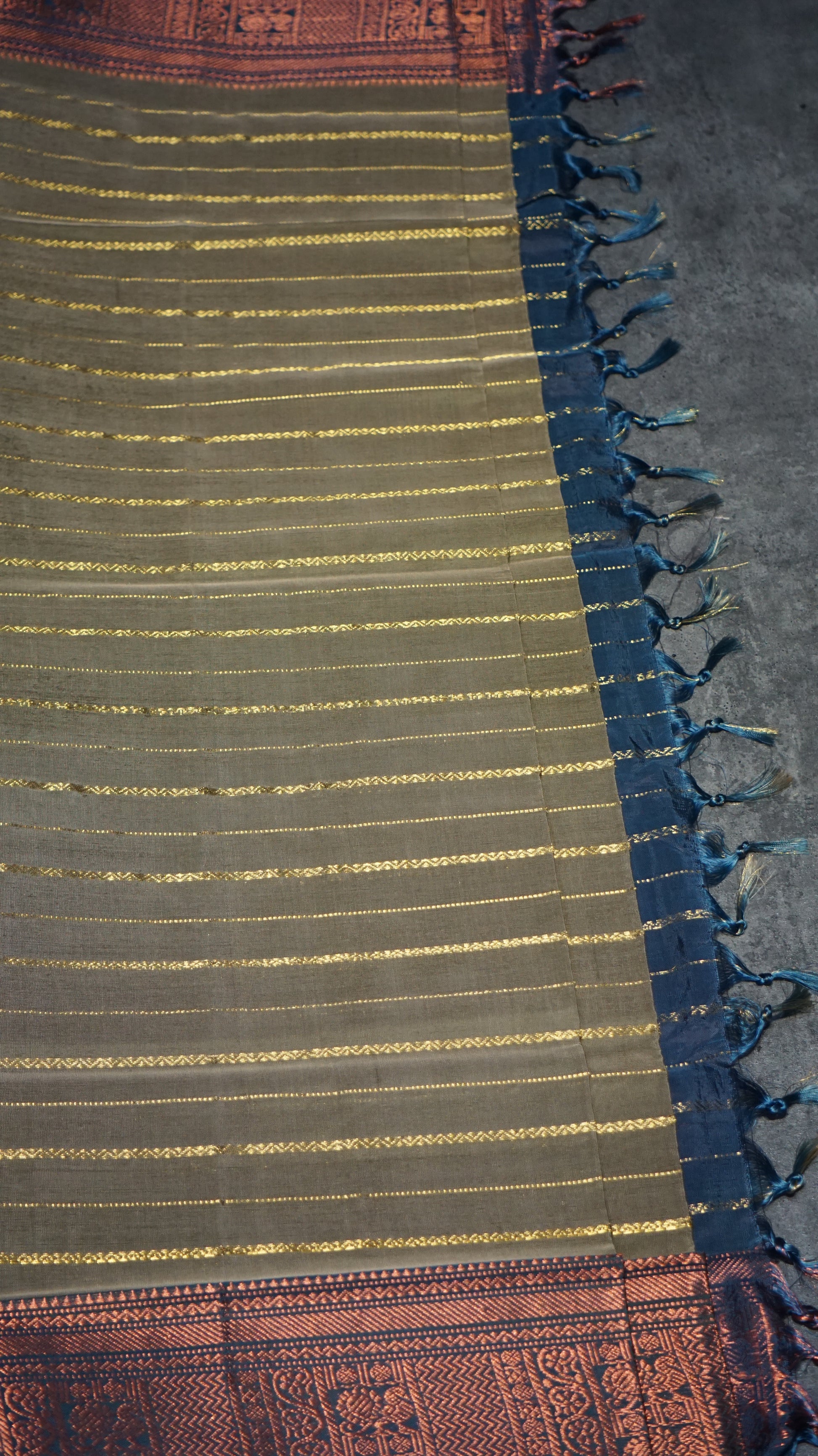 Vazhai Naaru Pattu Saree Velthari Navy Blue - Olive Green