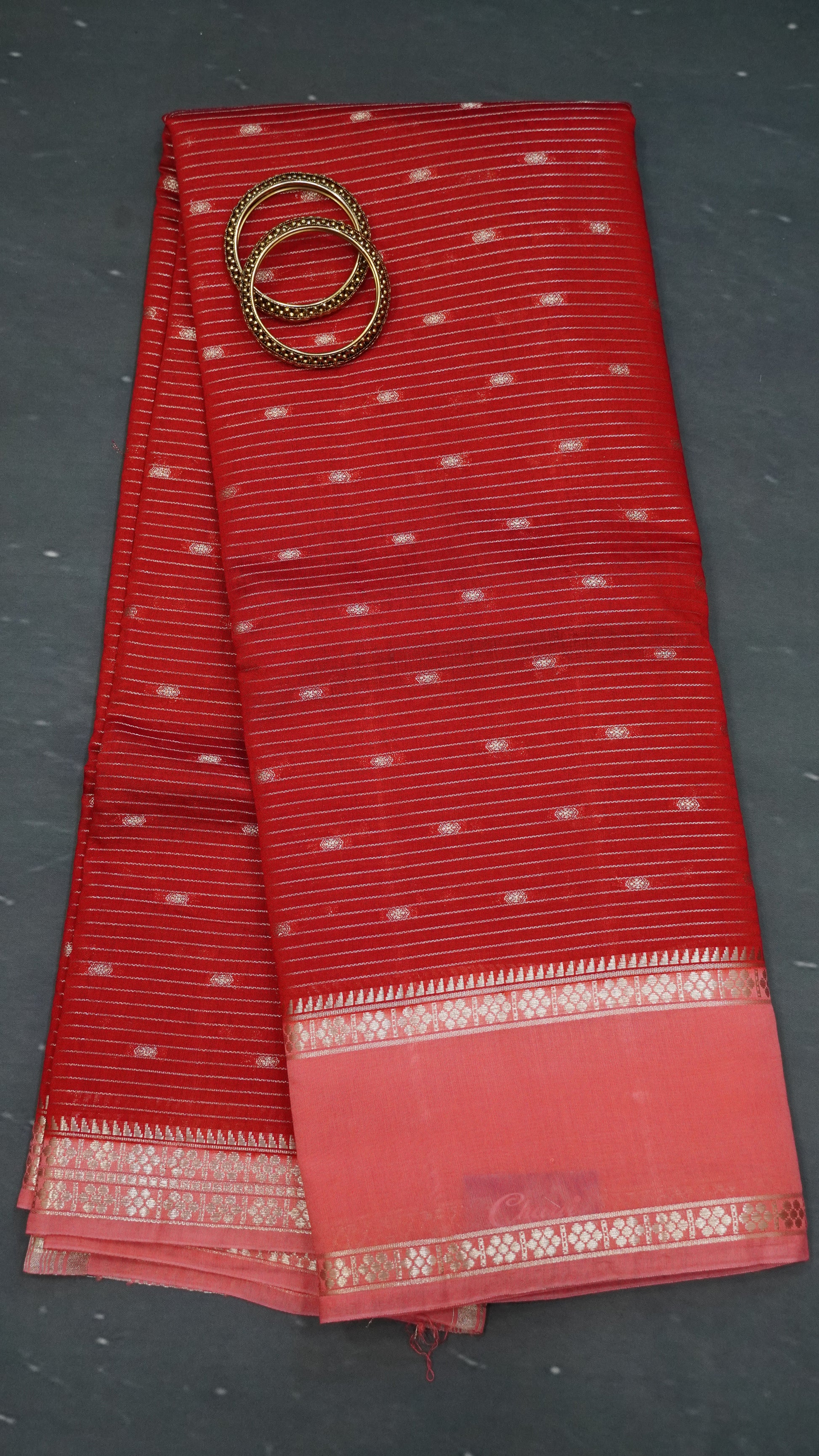 Viscose Saree-Floral Rettapet - Red